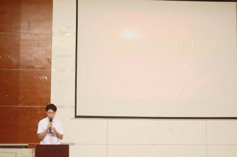 (图为在校优秀学生代表任亮同学发言)
