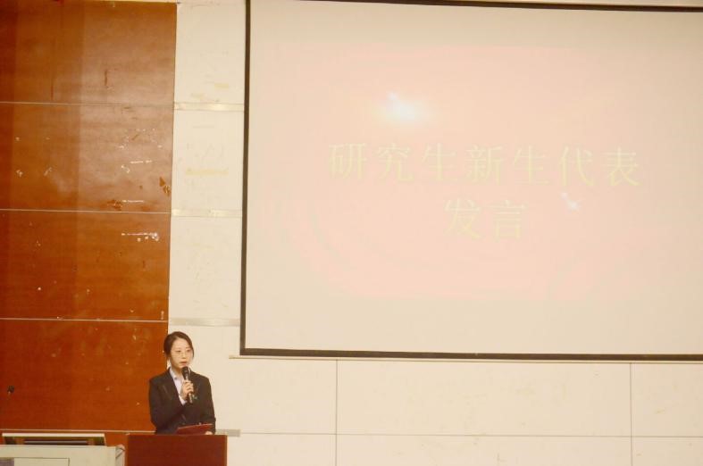 (图为研究生新生代表俞飘旖同学发言)