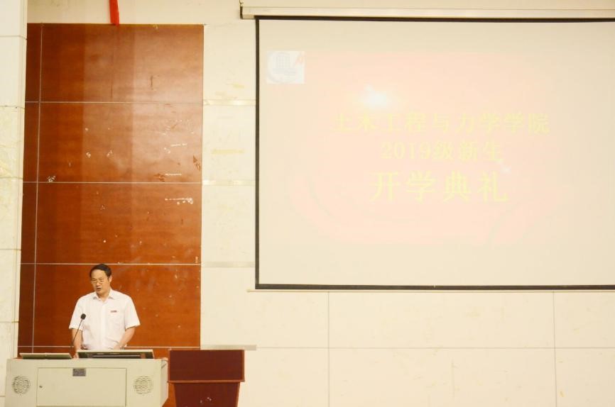 8月30日下午两点半,土木工程与力学学院2019级新生开学典礼在逸夫楼二报举行。院长龙志林、院党委书记陈幸华、副院长赵荣国、陈宾,院党委副书记欧阳巍,路桥系主任王智超,地下建筑与工程系主任印长俊,2019级新生班主任,院学工办、研工办老师,学生干部以及2019级全体新生参加了此次开学典礼。典礼由院党委书记陈幸华主持。