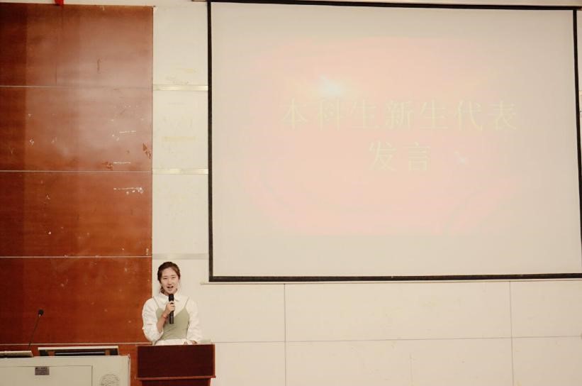 (图为本科生新生代表姜桂琳同学发言)