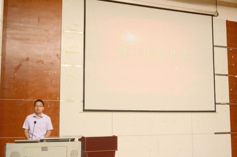 (图为教师代表曹国栋老师发言)