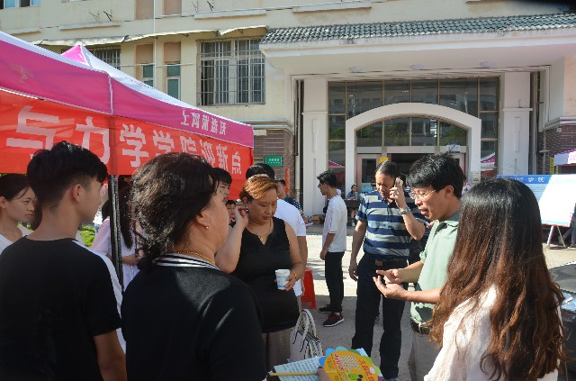 学院迎新工作人员顶着炎炎烈日,以最好的精神面貌开展迎新工作。通往南苑和琴湖公寓的道路上到处都是迎新工作者不断奔波的身影,汗水流淌在每位迎新工作者的脸上,但所到之处却处处洋溢着学院新生、新生家长及迎新工作者的笑容。