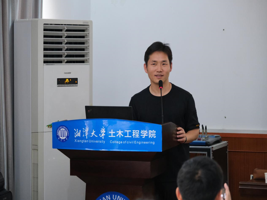 讲座由叶险峰老师主持,并向大家介绍了胡炜副总裁的个人信息,副院长许福发表了欢迎致辞,随后由胡炜副总裁为大家就智能测绘装备做了精彩讲座。