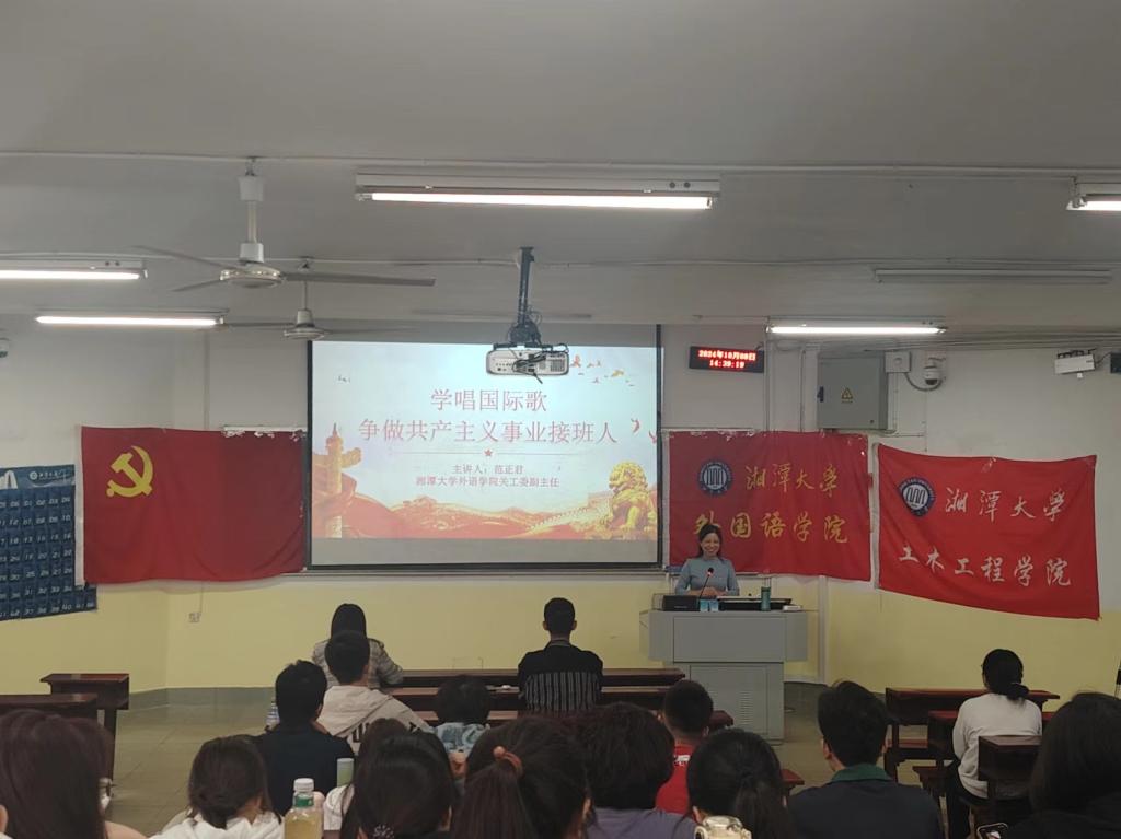 本次党课以学唱《国际歌》,争做共产主义事业接班人”为主题范正君讲述了《国际歌》的创作背景及深远意义,介绍了词曲作者和歌曲传唱历史,从歌曲内容、音乐特点、歌唱技巧等方面进行了专业的教唱指导。她鼓励学员们用心去感受歌曲的每一个音符和每一句歌词,将自己的情感融入歌声中。整个课堂气氛活跃,师生亲切互动,精彩纷呈,学员们掌声不断,本次党课在齐唱《国际歌》中进入高潮。她强调,《国际歌》是一首无产阶级革命者的信仰之歌,是中国共产党人心中的理想之歌,作为新时代的大学生,不仅要会唱《国际歌》,还要学习了解和传播弘扬《国际歌》所蕴含的崇高理想和英勇不屈的革命精神。她激励全体学员要通过传唱《国际歌》将所蕴含的革命精神内化于心,外化于行,展现自身的思想素质。
