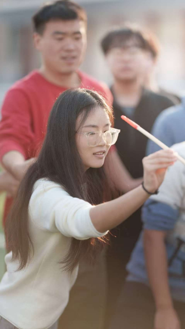 趣味投壶项目源于中国古代的一项传统投掷游戏,在这项活动中,各工作室的参赛队员们需要相互协作,帮助他人在紧张的比赛节奏中投出弧线命中箭壶才能得分。在活动中,一位同学五箭命中三箭,现场欢呼声一片,将整个比赛氛围推向高潮。